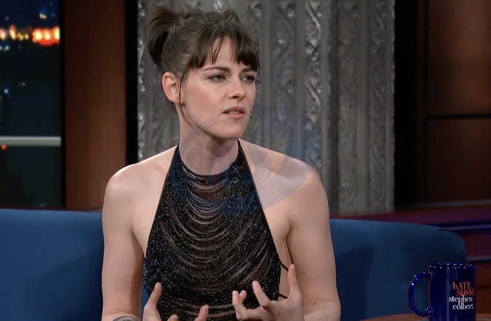 Pictures must credit: CBS Twilight actress Kristen Stewart used a TV chat show to tell trolls "f you” after her controversial magazine cover —posing in a jock strap. The openly gay star, 33, did the pose for US entertainment magazine Rolling Stone. Kristen, who has also played the late Princess Diana in royal movie Spencer, faced a lot of online hate for the photo which referenced her new movie, Love Lies Bleeding. She spoke out when she appeared on the Late Show with Stephen Colbert to promote the crime thriller in which she plays a gym receptionist who gets dragged into a criminal underworld. Picture supplied by JLPPA