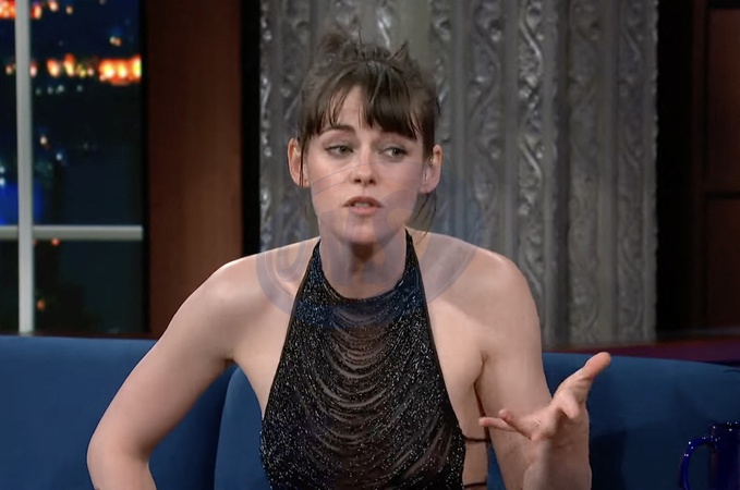 Pictures must credit: CBS Twilight actress Kristen Stewart used a TV chat show to tell trolls "f you” after her controversial magazine cover —posing in a jock strap. The openly gay star, 33, did the pose for US entertainment magazine Rolling Stone. Kristen, who has also played the late Princess Diana in royal movie Spencer, faced a lot of online hate for the photo which referenced her new movie, Love Lies Bleeding. She spoke out when she appeared on the Late Show with Stephen Colbert to promote the crime thriller in which she plays a gym receptionist who gets dragged into a criminal underworld. Picture supplied by JLPPA