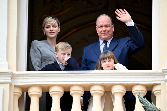 No Tabloid - Le prince Albert II de Monaco fête son anniversaire (66 ans) avec la princesse Charlène de Monaco et leurs enfants, le prince Jacques de Monaco, marquis des Baux, et la princesse Gabriella de Monaco, comtesse de Carladès, au balcon du Palais princier de Monaco, le 14 mars 2024. © Bruno Bebert/Bestimage No Web pour la Belgique et la Suisse Just for Hello, OK and Grazia for UK - No Tabloid - Prince of Monaco celebrates his birthday (66 years) with his family on the Place du Palais princenier in Monaco, on March 14, 2024.
