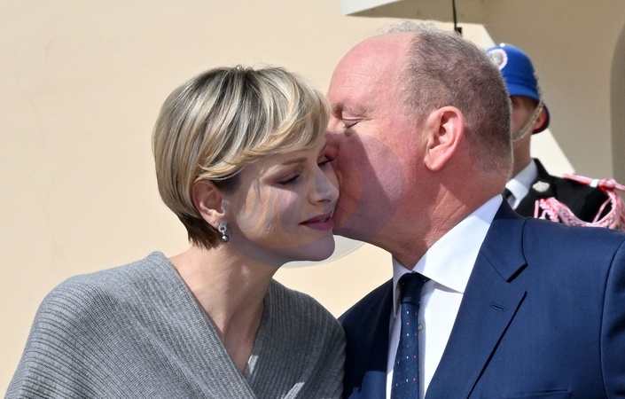 No Tabloid - Le prince Albert II de Monaco fête son anniversaire (66 ans) avec la princesse Charlène de Monaco et leurs enfants sur la Place du Palais princier de Monaco, le 14 mars 2024. © Bruno Bebert/Bestimage No Web pour la Belgique et la Suisse Just for Hello, OK and Grazia for UK - No Tabloid - Prince of Monaco celebrates his birthday (66 years) with his family on the Place du Palais princenier in Monaco, on March 14, 2024.
