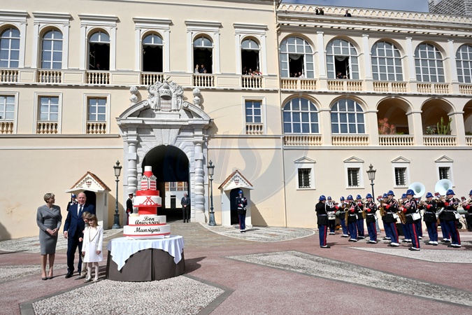 No Tabloid - Le prince Albert II de Monaco fête son anniversaire (66 ans) avec la princesse Charlène de Monaco et leurs enfants, le prince Jacques de Monaco, marquis des Baux, et la princesse Gabriella de Monaco, comtesse de Carladès, sur la Place du Palais princier de Monaco, le 14 mars 2024. © Bruno Bebert/Bestimage No Web pour la Belgique et la Suisse Just for Hello, OK and Grazia for UK - No Tabloid - Prince of Monaco celebrates his birthday (66 years) with his family on the Place du Palais princenier in Monaco, on March 14, 2024.