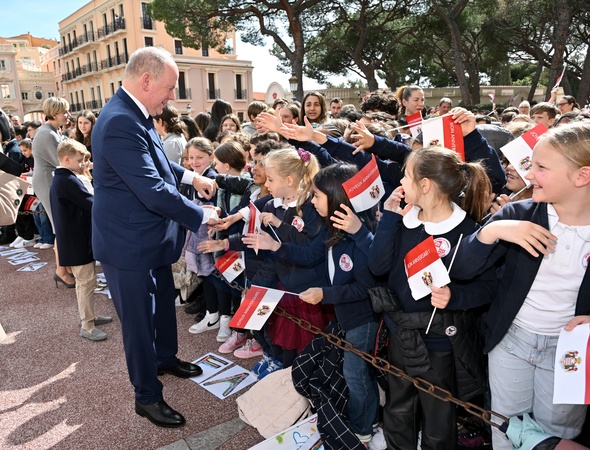 No Tabloid - Le prince Albert II de Monaco fête son anniversaire (66 ans) en famille sur la Place du Palais princier de Monaco, le 14 mars 2024. © Bruno Bebert/Bestimage No Web pour la Belgique et la Suisse Just for Hello, OK and Grazia for UK - No Tabloid - Prince of Monaco celebrates his birthday (66 years) with his family on the Place du Palais princenier in Monaco, on March 14, 2024.