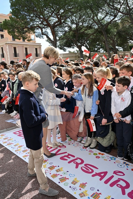 No Tabloid - Le prince de Monaco fête son anniversaire (66 ans) avec la princesse Charlène de Monaco et leurs enfants, le prince Jacques de Monaco, marquis des Baux, et la princesse Gabriella de Monaco, comtesse de Carladès, sur la Place du Palais princier de Monaco, le 14 mars 2024. © Bruno Bebert/Bestimage No Web pour la Belgique et la Suisse Just for Hello, OK and Grazia for UK - No Tabloid - Prince of Monaco celebrates his birthday (66 years) with his family on the Place du Palais princenier in Monaco, on March 14, 2024.