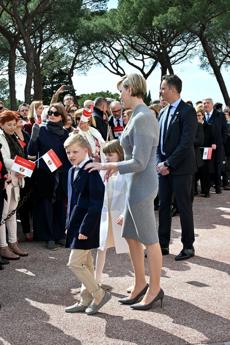 No Tabloid - Le prince de Monaco fête son anniversaire (66 ans) avec la princesse Charlène de Monaco et leurs enfants, le prince Jacques de Monaco, marquis des Baux, et la princesse Gabriella de Monaco, comtesse de Carladès, sur la Place du Palais princier de Monaco, le 14 mars 2024. © Bruno Bebert/Bestimage No Web pour la Belgique et la Suisse Just for Hello, OK and Grazia for UK - No Tabloid - Prince of Monaco celebrates his birthday (66 years) with his family on the Place du Palais princenier in Monaco, on March 14, 2024.