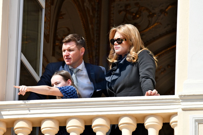 No Tabloïd - Gareth Wittstock et Camille Gottlieb - Le prince de Monaco fête son anniversaire (66 ans) en famille sur la Place du Palais princier de Monaco, le 14 mars 2024. © Bruno Bebert/Bestimage No Web pour la Belgique et la Suisse Just for Hello, OK and Grazia for UK - No Tabloid - Prince of Monaco celebrates his birthday (66 years) with his family on the Place du Palais princenier in Monaco, on March 14, 2024.