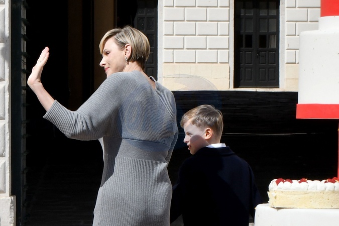No Tabloïd - La princesse Charlène de Monaco et le prince Jacques de Monaco, marquis des Baux - Le prince de Monaco fête son anniversaire (66 ans) en famille sur la Place du Palais princier de Monaco, le 14 mars 2024. © Bruno Bebert/Bestimage No Web pour la Belgique et la Suisse Just for Hello, OK and Grazia for UK - No Tabloid - Prince of Monaco celebrates his birthday (66 years) with his family on the Place du Palais princenier in Monaco, on March 14, 2024.