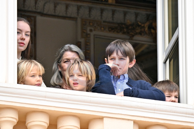 No Tabloïd - La princesse Alexandra de Hanovre, la princesse Caroline de Hanovre et Raphaël Elmaleh - Le prince de Monaco fête son anniversaire (66 ans) en famille sur la Place du Palais princier de Monaco, le 14 mars 2024. © Bruno Bebert/Bestimage No Web pour la Belgique et la Suisse Just for Hello, OK and Grazia for UK - No Tabloid - Prince of Monaco celebrates his birthday (66 years) with his family on the Place du Palais princenier in Monaco, on March 14, 2024.