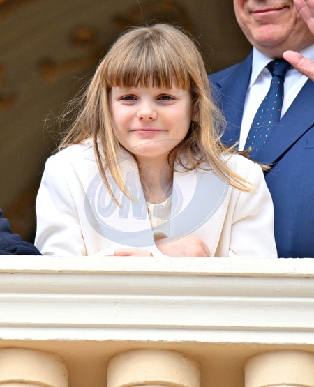 No Tabloïd - La princesse Gabriella de Monaco, comtesse de Carladès - Le prince de Monaco fête son anniversaire (66 ans) en famille sur la Place du Palais princier de Monaco, le 14 mars 2024. © Bruno Bebert/Bestimage No Web pour la Belgique et la Suisse Just for Hello, OK and Grazia for UK - No Tabloid - Prince of Monaco celebrates his birthday (66 years) with his family on the Place du Palais princenier in Monaco, on March 14, 2024.