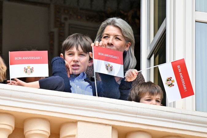 No Tabloïd - Raphaël Elmaleh et la princesse Caroline de Hanovre - Le prince de Monaco fête son anniversaire (66 ans) en famille sur la Place du Palais princier de Monaco, le 14 mars 2024. © Bruno Bebert/Bestimage No Web pour la Belgique et la Suisse Just for Hello, OK and Grazia for UK - No Tabloid - Prince of Monaco celebrates his birthday (66 years) with his family on the Place du Palais princenier in Monaco, on March 14, 2024.