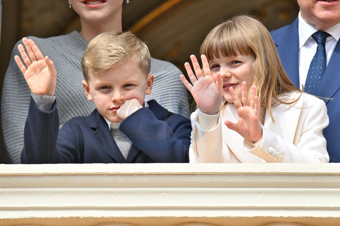 No Tabloïd - Le prince Jacques de Monaco, marquis des Baux, et La princesse Gabriella de Monaco, comtesse de Carladès - Le prince de Monaco fête son anniversaire (66 ans) en famille sur la Place du Palais princier de Monaco, le 14 mars 2024. © Bruno Bebert/Bestimage No Web pour la Belgique et la Suisse Just for Hello, OK and Grazia for UK - No Tabloid - Prince of Monaco celebrates his birthday (66 years) with his family on the Place du Palais princenier in Monaco, on March 14, 2024.