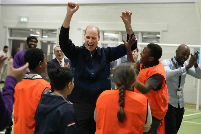 Britain's Prince William, the Prince of Wales, celebrates with young people after he threw a basket during a visit to WEST in London, Thursday, March 14, 2024. The Prince of Wales visited WEST (standing for 'Where Everyone Sticks Together'), the new OnSide Youth Zone in Hammersmith and Fulham, to see the brand-new purpose-built facilities that will soon be available to young people in the area., Credit:Frank Augstein / Avalon