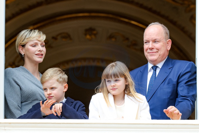 No Tabloïd - Le prince Albert II de Monaco, la princesse Charlène de Monaco et leurs enfants, le prince Jacques de Monaco, marquis des Baux, et la princesse Gabriella de Monaco, comtesse de Carladès - Le prince de Monaco fête son anniversaire (66 ans) en famille sur la Place du Palais princier de Monaco, le 14 mars 2024. © Bruno Bebert/Bestimage No Web pour la Belgique et la Suisse Just for Hello, OK and Grazia for UK - No Tabloid - Prince of Monaco celebrates his birthday (66 years) with his family on the Place du Palais princenier in Monaco, on March 14, 2024.