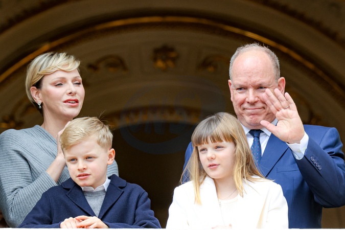 No Tabloïd - Le prince Albert II de Monaco, la princesse Charlène de Monaco et leurs enfants, le prince Jacques de Monaco, marquis des Baux, et la princesse Gabriella de Monaco, comtesse de Carladès - Le prince de Monaco fête son anniversaire (66 ans) en famille sur la Place du Palais princier de Monaco, le 14 mars 2024. © Bruno Bebert/Bestimage No Web pour la Belgique et la Suisse Just for Hello, OK and Grazia for UK - No Tabloid - Prince of Monaco celebrates his birthday (66 years) with his family on the Place du Palais princenier in Monaco, on March 14, 2024.
