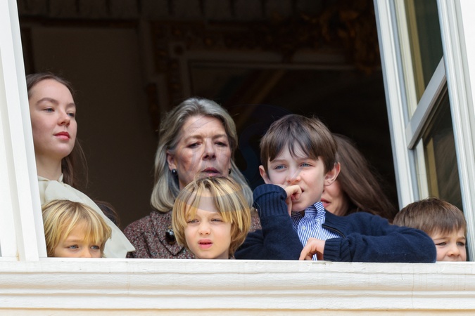 No Tabloïd - La princesse Alexandra de Hanovre, la princesse Caroline de Hanovre, Raphaël Elmaleh, Charlotte Casiraghi - Le prince de Monaco fête son anniversaire (66 ans) en famille sur la Place du Palais princier de Monaco, le 14 mars 2024. © Bruno Bebert/Bestimage No Web pour la Belgique et la Suisse Just for Hello, OK and Grazia for UK - No Tabloid - Prince of Monaco celebrates his birthday (66 years) with his family on the Place du Palais princenier in Monaco, on March 14, 2024.