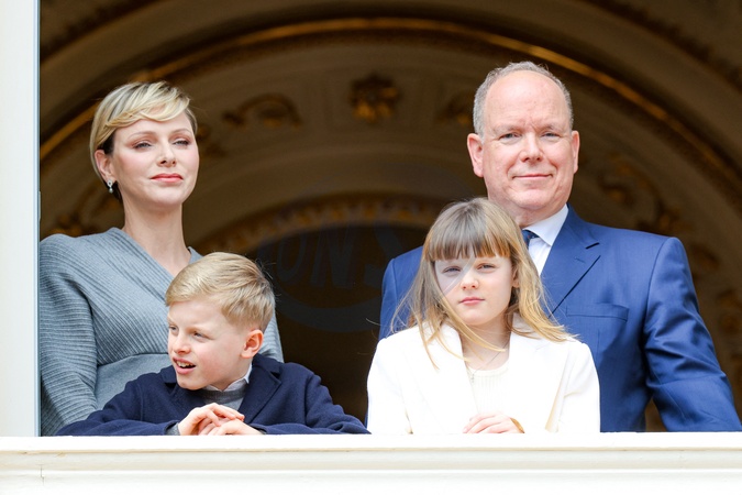 No Tabloïd - Le prince Albert II de Monaco, la princesse Charlène de Monaco et leurs enfants, le prince Jacques de Monaco, marquis des Baux, et la princesse Gabriella de Monaco, comtesse de Carladès - Le prince de Monaco fête son anniversaire (66 ans) en famille sur la Place du Palais princier de Monaco, le 14 mars 2024. © Bruno Bebert/Bestimage No Web pour la Belgique et la Suisse Just for Hello, OK and Grazia for UK - No Tabloid - Prince of Monaco celebrates his birthday (66 years) with his family on the Place du Palais princenier in Monaco, on March 14, 2024.