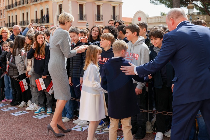 No Tabloïd - Le prince Albert II de Monaco, la princesse Charlène de Monaco et leurs enfants, le prince Jacques de Monaco, marquis des Baux, et la princesse Gabriella de Monaco, comtesse de Carladès - Le prince de Monaco fête son anniversaire (66 ans) en famille sur la Place du Palais princier de Monaco, le 14 mars 2024. © Bruno Bebert/Bestimage No Web pour la Belgique et la Suisse Just for Hello, OK and Grazia for UK - No Tabloid - Prince of Monaco celebrates his birthday (66 years) with his family on the Place du Palais princenier in Monaco, on March 14, 2024.