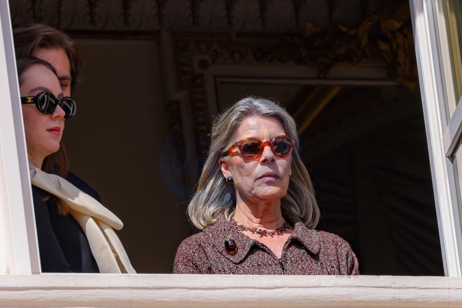 No Tabloïd - La princesse Alexandra de Hanovre et la princesse Caroline de Hanovre - Le prince de Monaco fête son anniversaire (66 ans) en famille sur la Place du Palais princier de Monaco, le 14 mars 2024. © Bruno Bebert/Bestimage No Web pour la Belgique et la Suisse Just for Hello, OK and Grazia for UK - No Tabloid - Prince of Monaco celebrates his birthday (66 years) with his family on the Place du Palais princenier in Monaco, on March 14, 2024.