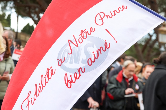 No Tabloïd - Atmosphère - Le prince de Monaco fête son anniversaire (66 ans) en famille sur la Place du Palais princier de Monaco, le 14 mars 2024. © Bruno Bebert/Bestimage No Web pour la Belgique et la Suisse Just for Hello, OK and Grazia for UK - No Tabloid - Prince of Monaco celebrates his birthday (66 years) with his family on the Place du Palais princenier in Monaco, on March 14, 2024.