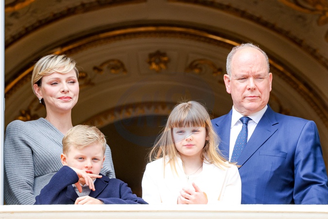 No Tabloïd - Le prince Albert II de Monaco, la princesse Charlène de Monaco et leurs enfants, le prince Jacques de Monaco, marquis des Baux, et la princesse Gabriella de Monaco, comtesse de Carladès - Le prince de Monaco fête son anniversaire (66 ans) en famille sur la Place du Palais princier de Monaco, le 14 mars 2024. © Bruno Bebert/Bestimage No Web pour la Belgique et la Suisse Just for Hello, OK and Grazia for UK - No Tabloid - Prince of Monaco celebrates his birthday (66 years) with his family on the Place du Palais princenier in Monaco, on March 14, 2024.