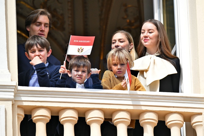 No Tabloïd - Ben-Sylvester Strautmann, Raphaël Elmaleh, Balthazar, Beatrice Borromeo et la princesse Alexandra de Hanovre - Le prince de Monaco fête son anniversaire (66 ans) en famille sur la Place du Palais princier de Monaco, le 14 mars 2024. © Bruno Bebert/Bestimage No Web pour la Belgique et la Suisse Just for Hello, OK and Grazia for UK - No Tabloid - Prince of Monaco celebrates his birthday (66 years) with his family on the Place du Palais princenier in Monaco, on March 14, 2024.