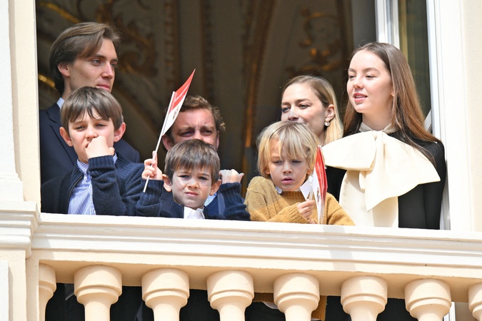 No Tabloïd - Ben-Sylvester Strautmann, Raphaël Elmaleh, Balthazar Beatrice Borromeo et la princesse Alexandra de Hanovre - Le prince de Monaco fête son anniversaire (66 ans) en famille sur la Place du Palais princier de Monaco, le 14 mars 2024. © Bruno Bebert/Bestimage No Web pour la Belgique et la Suisse Just for Hello, OK and Grazia for UK - No Tabloid - Prince of Monaco celebrates his birthday (66 years) with his family on the Place du Palais princenier in Monaco, on March 14, 2024.