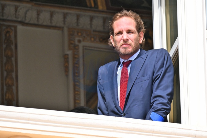 No Tabloïd - Andrea Casiraghi - Le prince de Monaco fête son anniversaire (66 ans) en famille sur la Place du Palais princier de Monaco, le 14 mars 2024. © Bruno Bebert/Bestimage No Web pour la Belgique et la Suisse Just for Hello, OK and Grazia for UK - No Tabloid - Prince of Monaco celebrates his birthday (66 years) with his family on the Place du Palais princenier in Monaco, on March 14, 2024.