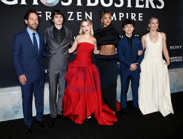 Paul Rudd, Finn Wolfhard, McKenna Grace, Celeste O'Connor, Logan Kim and Carrie Coon attending the 'Ghostbusters: Frozen Empire' New York Premiere held at AMC Lincoln Square on March 14, 2024 in New York City, NY©Steven Bergman/AFF-USA.COM
