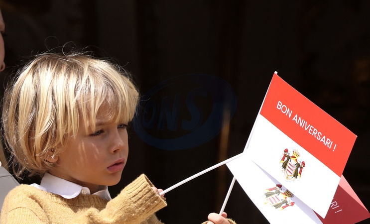 No Tabloïd - Le prince Albert II de Monaco fête son anniversaire (66 ans) avec la princesse Charlène de Monaco et leurs enfants Le prince Jacques de Monaco et la princesse Gabriella de Monaco sur la Place du Palais princier à Monaco
