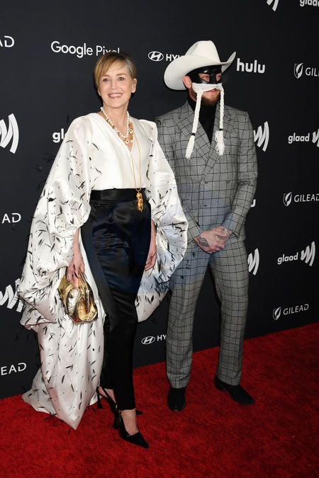 BEVERLY HILLS, CALIFORNIA - MARCH 14: (L-R) Sharon Stone and Orville Peck attend the 35th Annual GLAAD Media Awards at The Beverly Hilton Hotel on March 14, 2024 in Beverly Hills, California., Credit:Jeffrey Mayer / Avalon