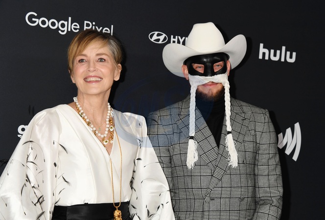 BEVERLY HILLS, CALIFORNIA - MARCH 14: (L-R) Sharon Stone and Orville Peck attend the 35th Annual GLAAD Media Awards at The Beverly Hilton Hotel on March 14, 2024 in Beverly Hills, California., Credit:Jeffrey Mayer / Avalon