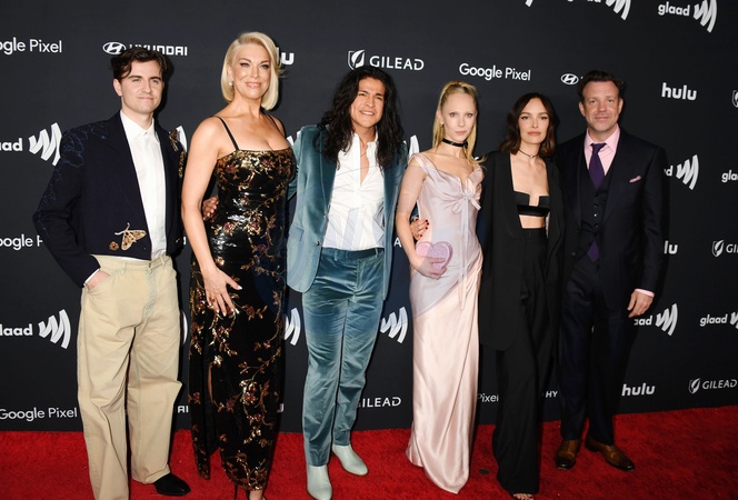 BEVERLY HILLS, CALIFORNIA - MARCH 14: (L-R) Billy Harris, Hannah Waddingham, Cristo Fernández, Juno Temple, Jodi Balfour and Jason Sudeikis attend the 35th Annual GLAAD Media Awards at The Beverly Hilton Hotel on March 14, 2024 in Beverly Hills, California., Credit:Jeffrey Mayer / Avalon