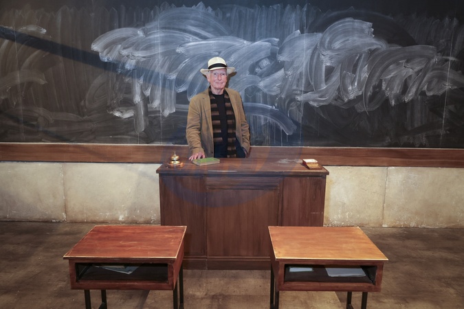 Peter Weir pozuje przed przedstawiem sztuki „Krąg zaginionych poetów” w teatrze Antoine w Paryżu
