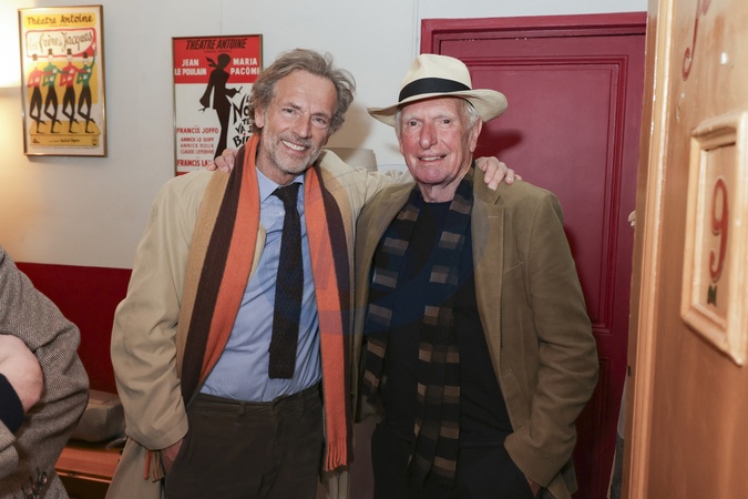 Exclusif - Stéphane Freiss, Peter Weir lors d'une représentation de la pièce de théâtre "Le Cercle des poètes disparus" au théatre Antoine à Paris, France, le 16 mars 2024. © Jack Tribeca/Bestimage No Web pour la Belgique et la Suisse Exclusive - For Germany Call For Price - Stéphane Freiss and Peter Weir attend a representation of the play "The Cercle des Poets disappeared" at the Antoine Theater in Paris, France, March 16, 2024.