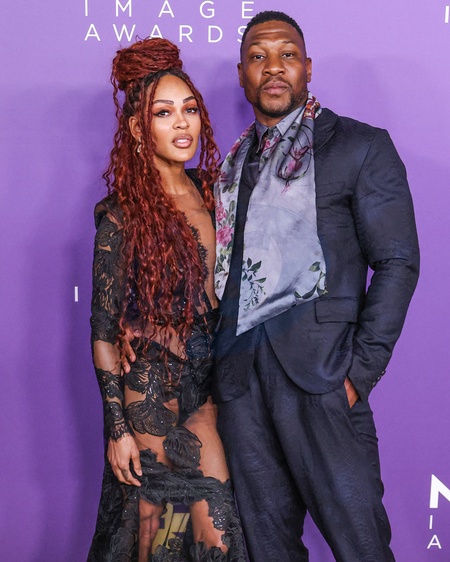 LOS ANGELES, CALIFORNIA, USA - MARCH 16: Meagan Good and boyfriend Jonathan Majors arrive at the 55th Annual NAACP Image Awards held at the Shrine Auditorium and Expo Hall on March 16, 2024 in Los Angeles, California, United States., Credit:Xavier Collin / Avalon