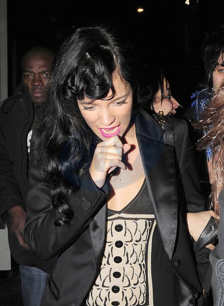 Lily Allen imprezuje z przyjaciolmi w Groucho Club, Londyn