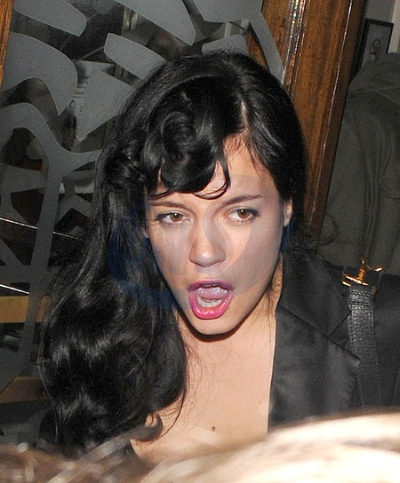 Lily Allen imprezuje z przyjaciolmi w Groucho Club, Londyn