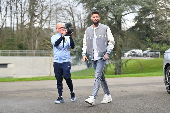 Olivier Giroud ( France ) arrives at the National Football Center on march 18, 2024 in Clairefontaine, France ( Photo by federico pestellini / panoramic ) -