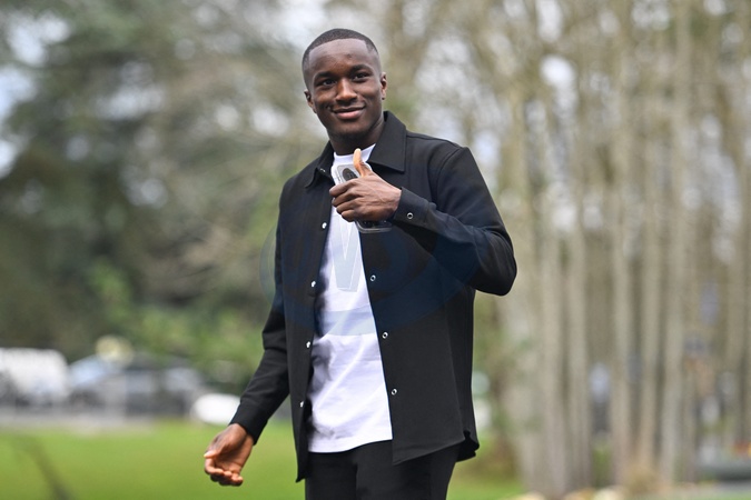 Moussa Diaby ( France ) arrives at the National Football Center on march 18, 2024 in Clairefontaine, France ( Photo by federico pestellini / panoramic ) -