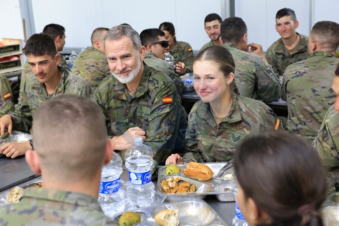 Le roi Felipe VI, la princesse Leonor d'Espagne et les étudiants de l'Académie générale militaire du Centre national d'entraînement San Gregorio à Saragosse