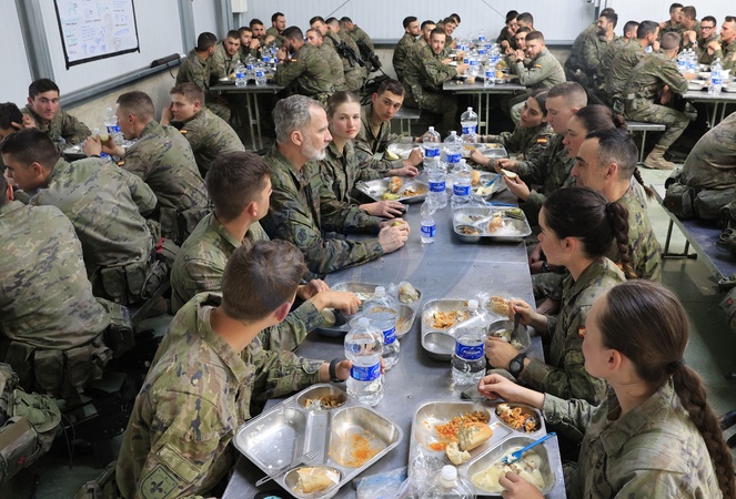 Król Felipe VI, hiszpańska księżniczka Leonor i uczniowie Generalnej Akademii Wojskowej Narodowego Centrum Szkoleniowego San Gregorio w Saragossie