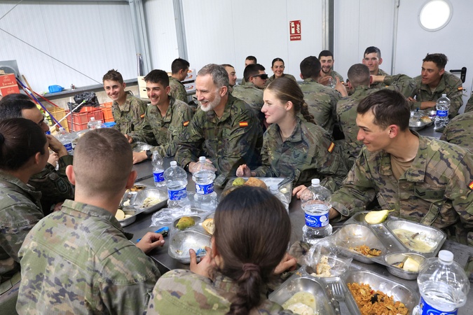 Le roi Felipe VI, la princesse Leonor d'Espagne et les étudiants de l'Académie générale militaire du Centre national d'entraînement San Gregorio à Saragosse