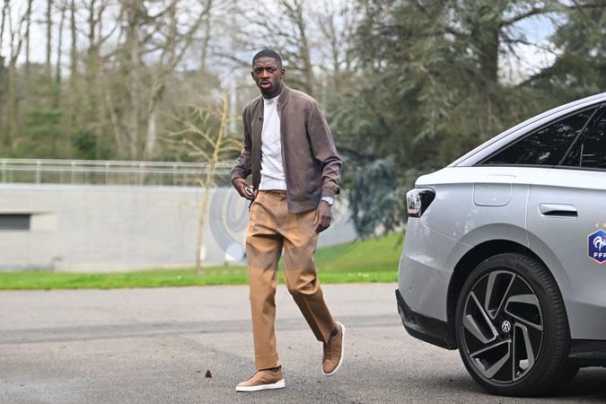 Ousmane Dembele ( France ) arrives at the National Football Center on march 18, 2024 in Clairefontaine-en-Yvelines, France. © Federico Pestellini/Panoramic/Bestimage