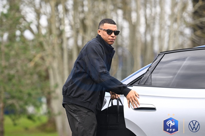 Kylian Mbappe ( France ) arrives at the National Football Center on march 18, 2024 in Clairefontaine-en-Yvelines, France. © Federico Pestellini/Panoramic/Bestimage