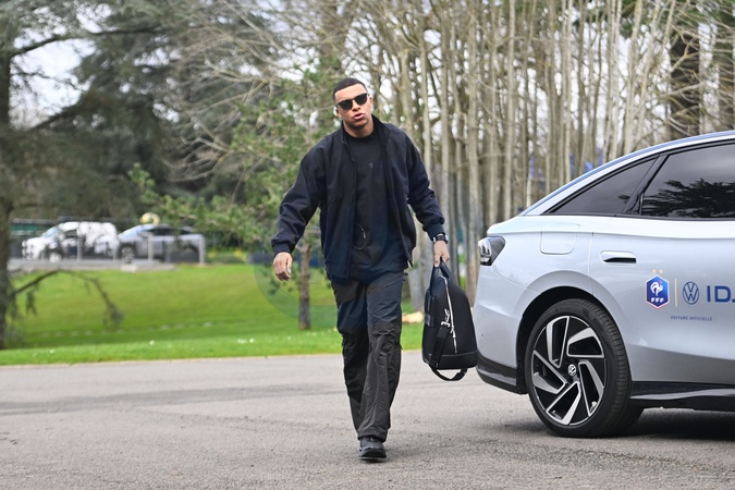 Kylian Mbappe ( France ) arrives at the National Football Center on march 18, 2024 in Clairefontaine-en-Yvelines, France. © Federico Pestellini/Panoramic/Bestimage