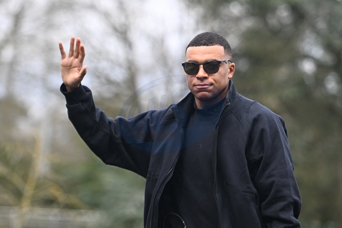 Kylian Mbappe ( France ) arrives at the National Football Center on march 18, 2024 in Clairefontaine-en-Yvelines, France. © Federico Pestellini/Panoramic/Bestimage