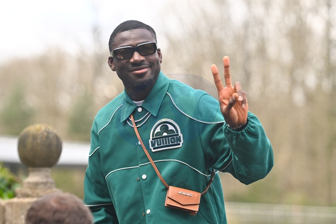 Youssouf Fofana ( France ) arrives at the National Football Center on march 18, 2024 in Clairefontaine-en-Yvelines, France. © Federico Pestellini/Panoramic/Bestimage