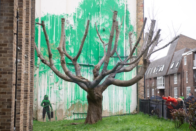 A new mural by street artist Banksy has appeared next to a block of flats in Islington, London, England, UK on Monday 18 March, 2024 acting as foliage for a tree. The artwork was confirmed by the artist earlier this afternoon as he shared photos on his instagram., Credit:Justin Ng / Avalon
