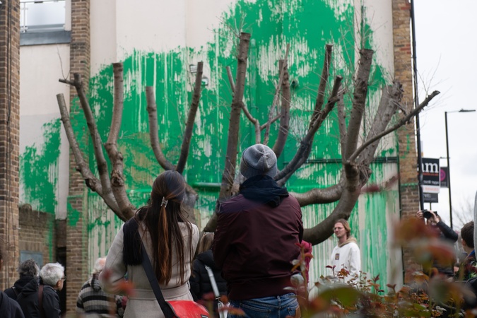 A new mural by street artist Banksy has appeared next to a block of flats in Islington, London, England, UK on Monday 18 March, 2024 acting as foliage for a tree. The artwork was confirmed by the artist earlier this afternoon as he shared photos on his instagram., Credit:Justin Ng / Avalon