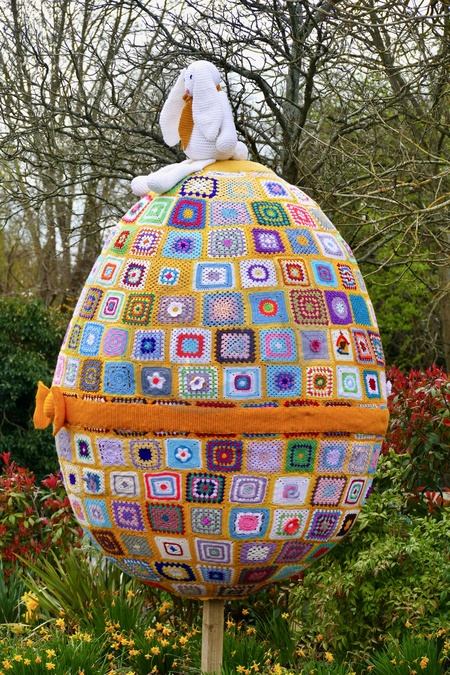 The picturesque village of St. Nicholas Hurst in Berkshire has been yarn bombed with chickens and a giant crocheted egg with an Easter bunny sitting on top to cheer up passers by., Credit:Geoffrey Swaine / Avalon