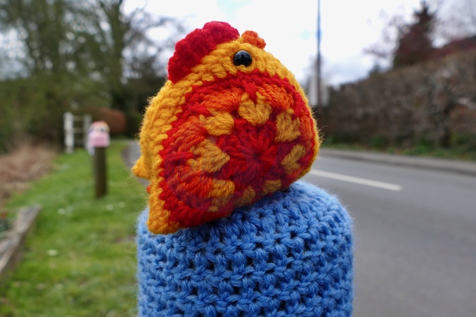 The village of St. Nicholas Hurst has been yarn bombed for Easter